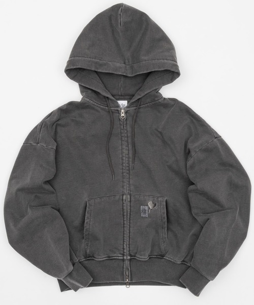 【balloon short zip hoodie / バルーンショートジップフーディ】■素材特性■kaoyorinakami オリジナル素材380gの裏毛を使用しております。耐久性の高いヘビーウェイト素材で型崩れしにくくラフな素材感となります。■ディテール■製品加工による、自然な色ムラとフェード感が特徴のジップアップフーディー。着込んだような柔らかな表情と、こなれた雰囲気を楽しめる一着です。フロントポケットにはブランドネームタグと、さりげないハートモチーフの刺繍を配置。主張しすぎないデザインで、幅広いスタイルに馴染みます。ジップ仕様のため、羽織としてもトップスとしても着用可能。ユニセックスで着用いただけます。 ※屋外での撮影画像や光の当たり具合で色味が異なって見える場合がございます。 商品の色味はスタジオでの詳細画像をご参照下さい。 - brand concept -人は顔より中身が大事▼商品のお気に入り登録完売カラーの再入荷通知や、ラスト1点、セールの通知をお知らせ致します。