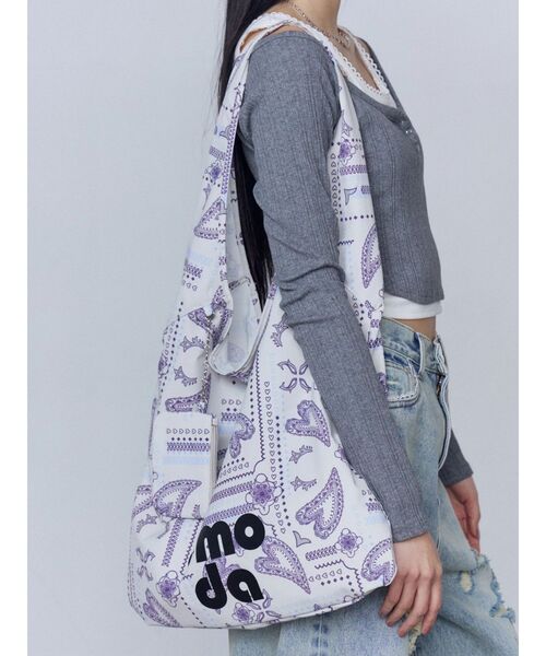 EMODAロゴがポイント!ワンハンドルトート■デザインバックボリューム感のあるフォルムが魅力のワンハンドルトートバック。軽やかな素材でデイリー使いしやすく、EMODAのロゴプリントがアクセントになっています。ハートチェーンのミニポーチ付も嬉しいポイント。単色カラーはもちろん、オリジナルのペイズリー柄も展開し、気分で選べるラインナップです。※着用画像はフラッシュの加減で実際の製品と色味等が異なる場合がございますので、生地のズームアップ画像をご確認ください。※ご利用の端末画面の設定により実際の商品と色味が異なる場合がございます。