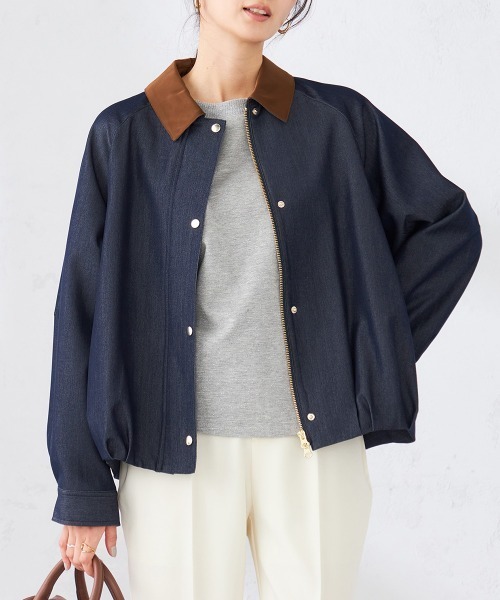 ◆トレンドのステンカラージャケット◆ 【デザイン】 ・トレンド継続のワークジャケット ・衿はサテン配色で顔周りを引き締めます ・前後差のある着丈で抜け感のあるスタイリングに ・丸みのあるシルエットで女性らしさを演出 ・ゴールドパーツできれいめ仕上げ ・カジュアルすぎずに着られるブルゾンに仕上げました ・ダブルジップ仕様のため、お好みのバランスで着用出来ます 【素材】 ・ベージュはダブルクロスのきれいめな素材 ・ネイビーはデニム見えの落ち感のある素材 ・衿はサテン素材 【コーディネート】 明るいカラーのパンツと合わせた春らしいスタイリングや カジュアルなデニムスタイルも決まる一枚。 -------------------- 着用シーズン 春:◎ 夏:× 秋:◎ 冬:× -------------------- 透け感:なし 裏地:あり 伸縮性:あり/裏地部分なし 光沢感:衿部分あり 生地の厚さ:ふつう -------------------- ≪お気に入り登録機能の使い方≫ ■商品のお気に入り登録(ハートマークをクリック) 再入荷通知や値下げ等、お得なご案内を受けることができます。 -------------------- ※商品画像は、光の当たり具合やパソコンなどの閲覧環境により 実際の色味と異なって見える場合がございます。 商品の色味の目安は商品単体の画像をご参照ください。