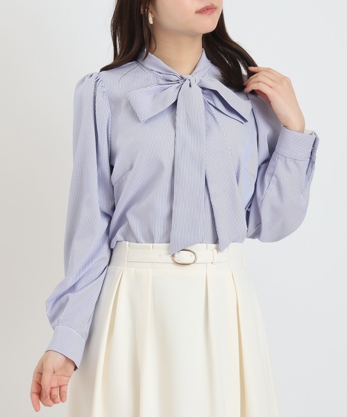 顔まわりを華やかに演出するボウタイデザインに、さりげなく輝くラメボタンをあしらったフェミニンブラウス。上品さと女性らしさを兼ね備えた一枚で、オン・オフ問わず幅広いシーンに活躍します。程良い落ち感のある素材を使用し、動くたびにやわらかく揺れるシルエットが魅力。フロントのラメボタンがコーディネートにさりげないアクセントをプラス。ジャケットやカーディガンのインナーとしても映え、オフィススタイルからきれいめカジュアルまで幅広く対応します。スカートと合わせてフェミニンに、パンツと合わせて上品に。ワードローブに一枚あると、着こなしの幅が広がる万能ブラウスです。【ASTORIA ODIER(アストリア オディール)】「女性の”はたらく”が、もっと楽しくなる服」なりたい自分を叶えるために毎日を大切にしている女性の気持ちに寄り添い、はたらく日も休みの日も、手に入れられる憧れをお客さまと一緒につくっていく。自分のキレイがみつかるフェミニンカジュアルスタイルを提案します。◆《お気に入り登録》でお得な情報を◆・「商品のお気に入り登録」再入荷、ラスト1点、セール情報などの通知も受け取ることができます。・「ブランドのお気に入り登録」新商品や再入荷など、ブランドのお得な情報を受け取ることができます。