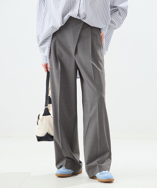 【2026 SS】JOURNAL STANDARD L'ESSAGE◆美脚が叶うデザインパンツのお目見えウエストのフロント部分がラップデザインになったスラックスパンツ。センタープレスもありワイドながらすっきりとしたシルエットに。スニーカーともマッチするのでカジュアルなスタイリングにもぴったりです。シリーズのジャケットとのセットアップもおすすめです。普段使いからオケージョンシーンまで幅広く活躍します※同シリーズで下記品番もございますLANAダブルブレストジャケット(品番:26010370201010 )**********************透け感:なし裏地:なし伸縮性:なし光沢感:なし生地の厚さ:普通**********************【スタッフ着用コメント】《スタッフK》年齢:20代後半/身長:167cm/着用サイズ:38サイズ感:ゆったりしています素材感:軽くて上質な素材感着心地:さらっとしていて軽めの素材感で穿き心地良いです。**********************※取り扱いについては、商品についている品質表示でご確認ください。※照明の関係により、実際よりも色味が違って見える場合があります。またパソコン・スマートフォンなどの環境により、若干製品と画像のカラーが異なる場合もございます。※商品の色味は、商品アップ画像をご参照ください。本体:ドライクリーニング