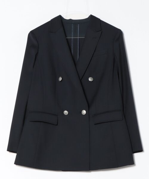 きちんと、でも堅すぎない。毎日にちょうどいい洗えるブレザー汗ばむ季節も快適に着られるウォッシャブル素材を使用した、NEWYORKER定番の洗えるネイビーのダブルブレストブレザー。ブレザーの特徴あるディテールはそのままに、軽く羽織れる一重仕立てで、夏の時期も洗練されたトラッドスタイルがお楽しみいただけます。新たに防しわ性を備え機能性をアップデートしており、通勤から普段のお出かけまで、様々なシーンでマルチに活躍するアイテムです。■素材ウール混ならではの上質感と、気負わず着られる軽やかさを両立したウォッシャブル素材。オックス組織で織り上げた、ウール・ポリエステル・ポリウレタン混のストレッチ素材を使用。程よいハリ感と伸縮性があり、長時間の着用でも快適な着心地をキープします。手洗い可能で防しわ性にも優れており、忙しい毎日にも取り入れやすいのが魅力です。■デザイン4面パネルと胸のダーツで立体的に仕上げたダブルブレストブレザー。2025年春夏商品よりもアームホールと身幅にゆとりを持たせることで、快適な着心地にブラッシュアップ。シャープな印象のピークドラペルやフラップ付きポケット、フラワーホールなど、細部のデザイン性にこだわりました。長めの着丈とウエストにゆとりを持たせたボクシーなシルエットをベースに、襟の刻みやボタン位置を下げてバランスを整えています。フロントにはロゴ入りのシルバー釦を使用し、オリジナリティのあるアクセントを加えました。一重仕立て。ポケットあり。袖口本開き仕様。■シーズン2026年春夏商品