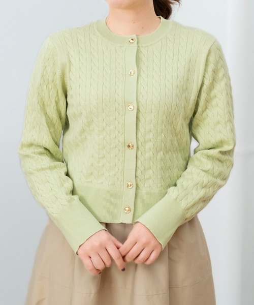 *エレナコットン上質なコットン素材を使用し、繊細なケーブル編みで仕上げたカーディガン。ほどよい肉感とやわらかな肌触りが心地よく、ロングシーズン活躍する一枚です。コンパクトなシルエットに立体感のあるケーブル柄が映え、シンプルながらも表情豊かなデザインに。羽織としてはもちろん、ボタンを留めてプルオーバー風に着こなすのもおすすめです。スカートにもパンツにも合わせやすく、きれいめからカジュアルまで幅広いスタイリングに対応。洗練された女性らしさを、さりげなく取り入れられる万能カーディガンです。洗濯:洗濯機使用可能(ネット使用)《お気に入り登録》はお得がいっぱい!「商品」のお気に入り登録で、再入荷、ラスト1点、セールなどお得な通知を受け取ることができます。「ブランド」のお気に入り登録で、新商品や再入荷などいち早くブランドの情報を受け取ることができます。是非、この機会にご登録くださいませ。