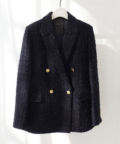 ◆コーディネートに鮮度を加え、オケージョンなどオンシーンでも大活躍!纏うだけで気分上がるツイードジャケットが登場!WEB・ルミネ新宿店・ルクア大阪店・名古屋タカシマヤゲートタワーモール店でのお取り扱いとなります。リュクスで特別感のあるツイード素材をNOBLE名品のピークドラペルジャケットに落とし込んだことで、袖を通すと女性らしく美しくも程よく抜けのある洗練された雰囲気に仕上がるジャケット。ツイードのざっくりと織られた独特の風合いと立体的な表面感で陰影が生まれ、さらっとシンプルに羽織るだけで上級者のようなルックスに。ツイードならではの使い込むほど馴染んでいく感覚も楽しめ、且つデザインはタイムレスなピークドラペルジャケットなので1枚持っておくと長年愛せるワードローブの名品になること間違いなし。フロントと袖口の金ボタンもアクセントになっており、ディテールにもこだわった1着です。スラックスやタイトスカートなどキレイめアイテムと合わせてお仕事やオケージョンで着用したり、オフの日はデニムなどと合わせてカジュアルダウンもお勧めです。**********************透け感:なし裏地:あり伸縮性:なし光沢感:なし生地の厚さ:普通**********************※取り扱いについては、商品についている品質表示でご確認ください。※こちらの商品は、NOBLEでの取り扱いになります。直接店舗へお問い合わせの際はNOBLE店舗へお願い致します。※照明の関係により、実際よりも色味が違って見える場合があります。またパソコン・スマートフォンなどの環境により、若干製品と画像のカラーが異なる場合もございます。※商品の色味は、商品アップ画像をご参照ください。本体:ドライクリーニング