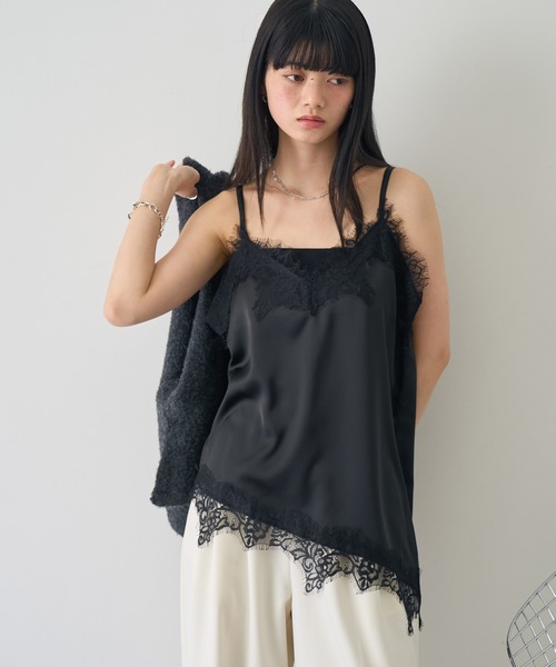 大人のモードスタイルを格上げしてくれる、アシンメトリーなサテンキャミソール。 繊細なレースをドッキングした、シンプルながらも個性の感じられる主役級トップス。 メイン使いとしてはもちろん、トップスの裾から覗かせたり、着回し力も抜群◎ ◇DESIGN ・身体のラインを拾いすぎず、すとんと落ちるサテン素材のシルエットが華奢見せも叶えてくれ、大人のこなれ感をプラス。 ・こだわりのアシンメトリーヘムデザインが奥行きのある抜け感を作り、全身のバランスを軽やかに見せてくれます。 ・強すぎない上品なツヤが、デイリーシーンから華やかなシーンまで幅広く対応 ・肩ひもはアジャスター付きで、着丈やレイヤードの深さを調節できるのもポイント。 ◇FABRIC ・胸元と裾に施された幅広のレースが、サテンの滑らかな質感と相まってリュクスな印象に。 ・適度な厚みのあるサテン生地を使用し、身体のラインを拾いすぎず、すとんと落ちるシルエットが縦のラインを強調します。 ◇STYLING ・一枚での着用はもちろん、シアートップスやカットソーとのレイヤードスタイルにも。 ・デニムやスラックスを重ねることで、トレンド感のある甘さを抑えたモードな着こなしに仕上がります。 ・ジャケットやオーバーサイズシャツを上から羽織り、裾からレースを覗かせる大人のリラックススタイルにもおすすめです。 【NOGLE/ノグル】 上品さと遊び心をもちながら、 変わらずに心地よく着続けられるもの。 ■公式インスタグラム @nogle_official ★商品のお気に入り登録→【カートに入れる】右側のハートマークをクリック 完売カラーの再入荷通知や、ラスト1点の通知、セールの通知も受け取ることができます。 ※店頭及び屋外での撮影画像は、光の当たり具合で色味が違って見える場合があります。またご覧いただきますモニターや使用環境により実際の商品と多少色味が異なって表示される場合がございます。 予めご了承をお願いいたします。