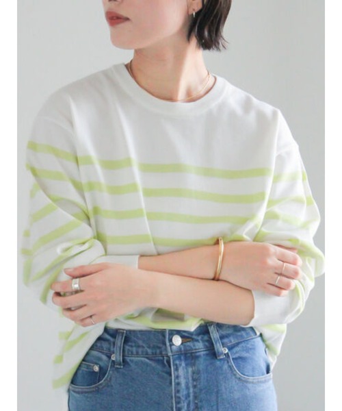 爽やかなボーダー柄と、ゆとりのあるボックスシルエットが特徴のプルオーバー。コットン100%のソフトで優しい着心地が魅力。ゆとりを持たせたボックスシルエットは華奢見せ効果も期待でき、上品で大人っぽい印象を与えてくれます。春らしいオフベースのパネルボーダーのラインナップです。デニムでカジュアルに合わせたり、スラックスやスカートと合わせてすっきりまとめるなど、デイリーに活躍する一枚です。【その他採寸】F 着丈:[前]60cm[後]63cm ※商品画像は、撮影環境やお客様のご利用のPC・スマートフォンのモニター環境などにより実物と色味に差異がある場合がございます。※着用画像はサンプルを使用して撮影しております。製品と一部仕様が異なる場合がございます。予めご了承ください。★《お気に入り登録》でお得な情報をGET★① 商品ページ内のハートマークをクリック!② 以下通知が受け取れます!「再入荷」「ラスト1点」「特別セール」etc..\ブランド、ショップのお気に入りも是非!/