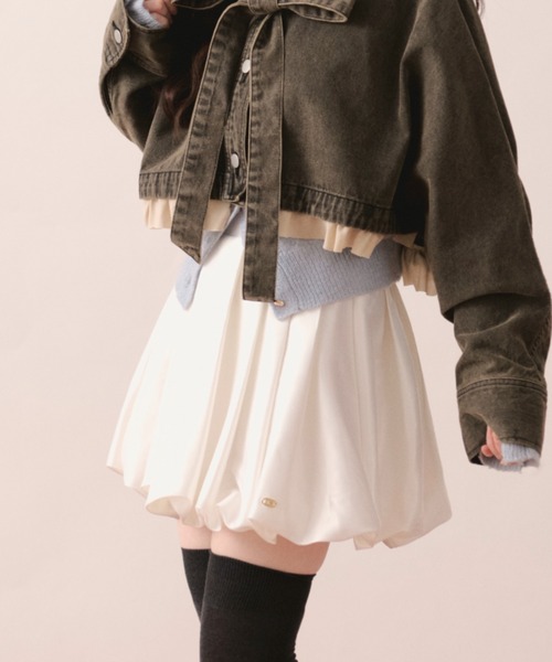 ※繊細な素材を使用しているため、お取り扱いには十分ご注意ください。 【design point】 ふんわりとしたシルエットが魅力のフレアスカート。 タックを施すことで立体感を出し、動くたびに美しく揺れるデザインに仕上げました。 ウエストまわりはすっきりと、裾にかけて自然に広がるラインがスタイルアップ効果を演出。 程よいハリ感のあるサテン素材で、甘くなりすぎず上品な印象を与えてくれます。 【styling point】 コンパクトなトップスやニット、ブラウスとの相性も抜群。 デイリーからお出かけ、特別なシーンまで幅広く活躍する一着です。 ………………………………… 透け感:ホワイトのみややあり 伸縮性:ウエスト後ろゴム仕様 裏地:あり ポケット:なし ………………………………… 【 ATTENTION 】 ・アテンションタグや洗濯表示を必ずご確認の上、ご使用下さい。 ・ご覧のモニター環境や撮影環境により、実物の商品と多少色味が異なって見える場合がございます。 ・サイトに表示されているカラー名、商品名は実際のお届け商品のタグに記載されているカラー名、商品名と異なる場合がございます。 また表示のサイズ感と実物は若干異なる場合もございますので、予めご了承ください。
