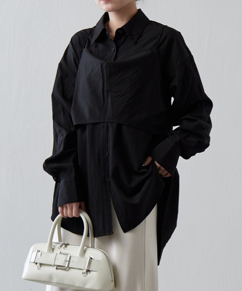 《 Lui's FEMME(ルイス ファム)オリジナル26SSコレクション 》単品使いでもレイヤードでも活躍!サテンキャミセットルーズシャツ【ポイント】・ビスチェとシャツがセットになっており着回し力抜群・ビスチェは肩紐調節が可能なのも嬉しいポイント。・ビスチェキャミをさりげなくレイヤードできるブラウスのため、これ一つでコーデが決まるアイテム。・別々で使えるのでシーズンレスでもシーンに合わせても着用可能【素材】・程よい落ち感とドレープ感のある素材感。・なめらかな肌触りで、上品見え。【スタイリング】・ジャケットを羽織ったキレイめスタイルや、サテンスカートを合わせた大人かわいいスタイルがおすすめ。・女性らしいアイテムなので、あえてワイドデニムで合わせたハンサムスタイルにもピッタリ◎・イージーパンツやワイドパンツと合わせたリラクシーでキレイめカジュアルなスタイリングにも。【サイズ】キャミ/身丈:27.5,身幅:48**********************透け感:なし裏地:なし伸縮性:あり光沢感:なし生地の厚さ:普通**********************【ブランド】Lui's FEMME(ルイス ファム)凛とした芯のある女性。 自立した、女性のワードローブをイメージ。洗練されたかっこよさの中に、女性らしさ・かわいさ・セクシーさを持つ。自分自身のスタイル(自分らしさ・個性・生き方・感覚...)を表現できるひとつの手段としての服。肩肘張らない、心地よいリラックス感のあるスタイルを上質な素材、優雅なシルエットで提案。【注意事項】※画像の商品はサンプルです。実際の商品と色味、仕様、加工、サイズ、素材等が若干異なる場合がございます。※工場の生産の都合上、納期が変更になる場合がございます。発送日の前後については予めご了承ください。※入荷状況により、お客様への発送が店頭販売より遅れる場合もございます。※商品を使用前に、タグ等に記載されている「取り扱い上の注意書き」、「洗濯表示」を必ずご確認ください。※商品画像は、光の当たり具合やパソコンなどの閲覧環境により、実際の色味と異なって見える場合がございます。予めご了承ください。▼商品のお気に入り登録完売カラーの再入荷通知やセール情報を受け取ることができます。気になるアイテムは「お気に入り」登録がおすすめです!♡マークをクリックし、お好きなカラーを選んでお気に入り登録をすると 残り1点のお知らせ、再入荷のお知らせ、SALE情報などを受け取ることができます。