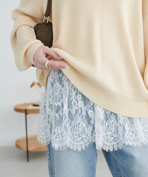 レイヤードするだけでキレイ見えが叶うレースキャミ・コーデに華やかさをプラスするレースデザイン・長めのレース切替が腰回りやヒップラインをさりげなくカバー◎・アジャスター付きでお好みの長さに調整が可能・キャミ部分は伸縮性のあるリブ素材●スタイリング・ニットやカーディガンの裾からちらっと見せるレイヤードコーデ・ジャケットのインナーに合わせた上品なスタイリング・デニムと合わせるだけで、カジュアルの中にも女性らしさをプラスできます●おすすめのスタイリングアイテム▶2WAYドルマンプルオーバー▶UVサラモチメタル釦クルーカーディガン▶USコットンデニムストレートパンツ▶テックリネンシャツジャケット***********************洗濯方法:手洗い可能裏地:なし透け感:レース部分のみあり伸縮性:リブ部分のみあり光沢感:なし生地の厚さ:普通***********************●STAFF着用コメント149cmスタッフ:肩紐で長さ調節ができるので、合わせるアイテムによって見せ方を変えながらスタイリングを楽しむことができます。レース部分は透け感があるので、レイヤードしても軽やかな雰囲気をプラスしてくれる点もポイントです。155cmスタッフ:キャミソールタイプなので、レイヤードしてもトップス部分がごわつかないです。トレンドのアイテムですが、プチプライスなので、2色買いも考えています★162cmスタッフ:いつものコーデにプラスするだけで、旬なコーデになります♪カジュアルにもキレイメにも着こなせるので、オンオフ問わず着回しができます。【お取り扱いの注意】※着用時、洗濯時は必ず取り扱い表示・タグをご確認の上、お取り扱いください。・手洗い:30℃まで可能・洗濯ネットを使用してください。・洗濯の際は、他の物と分けて洗ってください。・洗濯により若干の縮みが生じる場合があります。・色落ち、色移りすることがありますので、浸け置き洗いや、濡れた状態での放置はお避けください。・漂白:不可・タンブル乾燥:不可・アイロン:不可・ドライクリーニング:不可・ウエットクリーニング:可能・デリケートなレース素材を使用しております。表面の粗い物に擦ったりバックやベルト、先の鋭い物に引っ掛けますとささくれや糸が浮き易く、切れる事もあります。お取り扱いには十分にご注意ください。【カラー表記について】システム上の都合により、一部カラー名がサイト表記と異なる場合がございます。【入荷時期について】入荷日ごとに販売数量が決まっているため、オンラインでは完売後に次期納期の数量にて予約販売を行っております。店舗入荷時期と予約商品のお届け時期が異なる場合がございますので、予めご了承ください。※追加入荷のある商品もございますので、詳しい店舗入荷時期に関しましてはお近くの店舗へお問い合わせください。※店舗の在庫状況に関しましては、こちらのページに記載されている「店舗在庫」から確認にしていただけます。「在庫あり」の表記でも、お取り置き分などでお客様に販売できない場合がございます。※予約商品でも、店舗では追加がない場合もございます。ご了承ください。※初回予約商品でも配送処理が発生するため、店舗より遅れてのお届けとなる場合がございます。