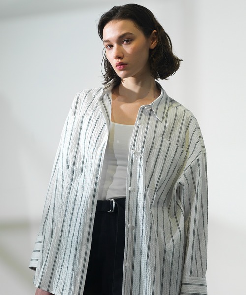 〈素材〉・透け感 ストライプややあり・裏地 なし・伸縮性 あり・防シワ(ホワイト・チャコール・ブルー)・抗ピル(ホワイト・チャコール・ブルー)・手洗い可能・無地の生地は着心地よく、高い伸縮性を持つ機能糸を使用した生地・ストライプ生地は、トレンドのポコポコしたサッカー生地を使用、 凹凸による肌離れのよさ、天然素材の吸湿性の高さで快適〈デザイン〉・様々なコーディネートに合わせやすい、ほど良いオーバーサイズのシャツ・胸ポケット下のタックディテールで、やや立体感のあるフォルム・背中部分のボタン開きデザインは、おしゃれ且つ着用時の開閉で体温調調節可能・羽織として着用可能、シャツの上からビスチェ、ベストを重ねて着ても◎・季節問わず、オールシーズン着用しやすいシンプルなデザイン《THE TOKYO》ファッションを楽しむ大人をターゲットに高感度なFETICO、HARUNOBUMURATA、TOGA、beautiful people、コムデギャルソンなどの日本ブランドを拘りセレクトしているセレクト型コミュニティストア。■商品のお気に入り登録(♡をクリック)・ラスト一点、再入荷、セール時の通知を受け取れます。・クーポンやタイムセールの通知を受け取れます。・お気に入り商品を一覧でご覧になれます。・実店舗でのショッピングでもお役に立ちます。■ブランドのお気に入り登録・新作やイベントなどブランドのお得な情報を受け取れます。