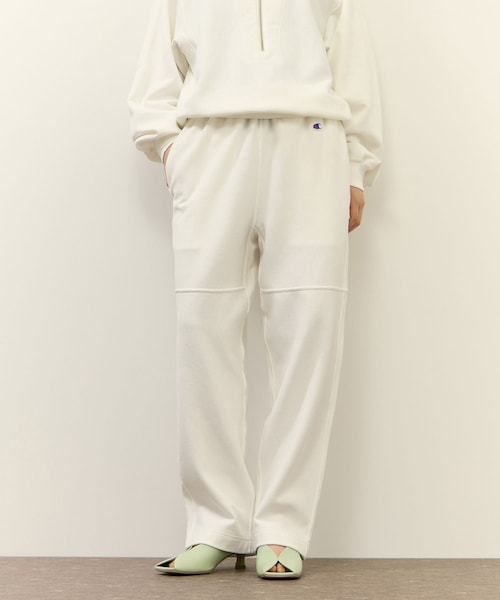 ◇26SS◇ ADAM ET ROPE' FEMME 【Design】 ADAM ET ROPE'別注の特別なモデル。 裾にかけてストレートなシルエットで、程よくカジュアルときれい目なトレンド感をミックスしたワイドシルエットのスウェットパンツ。 ストンと綺麗に落ちるシルエットで、きれいめなスタイリングにも合わせやすいデザイン。 同素材での切り替えもポイントに。 同素材の別注 SWEAT HALF ZIP(品番:EUM36770)とセットアップでの着用もおすすめです。 【Color】 春らしく合わせやすいオフホワイト、ブラウン、ネイビーの3色展開。 [Champion チャンピオン] 1919年、エイプ&ウィリアム・フェインブルームの2人の兄弟が、チャンピオンの前身となるニッカーポッカー・ニッティング・カンパニーをニューヨーク州ロチェスターに設立し、今もなお進化を続けているアメリカのアスレチックウェアブランド。 優れた運動性能と耐久性を誇る、「スウェットシャツ」が米軍学校の訓練用ウェアに採用。以後、カレッジやプロのアスリート達に育てられ、全幅の信頼を獲得。常にアスリートの立場で考え、新しいものを追求する精神(=Champion 1st)をウェアに宿している。機能的なデザイン・耐久性・素材・縫製といった、ひとつひとつのディテールにこだわるクラフトマンシップは現在も脈々と受け継がれ、日本でも「ザ・キング・オブ・スウェットシャツ」として親しまれ、多くのファンに愛用されている。 --------------- ■メーカーカラー表記(JUN表記) OFF WHITE(オフホワイト) LIGHT BROWN(ブラウン) NAVY(ネイビー) --------------- ■メーカーサイズ表記(JUNサイズ表記) S(S) M(M) --------------- ◇モデル情報 オフホワイト:身長:166cm size:S ブラウン・ネイビー:身長:166cm size:M ※撮影時の光、お使いのモニター環境によって色の見え方が違う場合がございます。