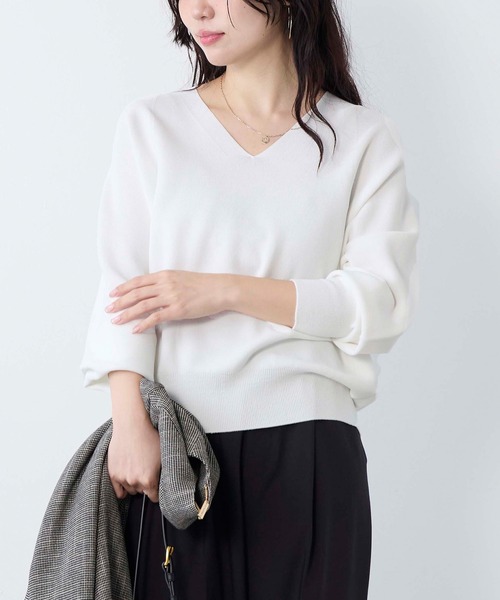 立体的なフォルムが自然と出て、ニュアンスのあるこなれた雰囲気を楽しめるニットプルオーバー。ホールガーメント(無縫製)で編み上げられているので縫い目がなく、最高の着心地と美しいシルエットが魅力です。腰にかかるほどの丈感で様々なボトムスと合わせやすいデザインに仕上げました。全色MICA&DEALオリジナルカラーで染めた糸で編み上げています。【fabric】アセテートとナイロン加工糸を交撚し吸放湿に優れたストレッチ素材です。ドライタッチで肌にまとわりにくくさらりとした着心地です。--------------------------------------透け感:WHITEのみややあり裏地:なし伸縮性:あり光沢感:なし生地の厚さ:普通--------------------------------------水洗い可*詳しくは商品の洗濯表示にてご確認をお願い致します。【coordinate】上品な素材のワイドパンツやプリーツスカートと合わせると、柔らかく女性らしい印象に。デニムやカジュアルアイテムと合わせて、リラックス感のある着こなしも。ニットの裾を少しインすると、こなれ感が出ます。足元はパンプスで引き締めたり、スニーカーをオンして大人カジュアルスタイルもおすすめです。※商品画像はできる限り実物の色に近づけるよう徹底しておりますが、お使いのデバイスのモニター設定、お部屋の照明等の閲覧環境により実際の色味と異なって見える場合がございます。※画像の商品はサンプルです。実際の商品と仕様、加工が若干異なる場合があります。予めご了承くださいませ。▼商品のお気に入り登録お気に入りアイテムの値下げ・再入荷・在庫1点などの通知を受け取ることができます。 ▼ブランドのお気に入り登録新商品や再入荷、クーポン配布などのお得な情報を受け取ることができます。
