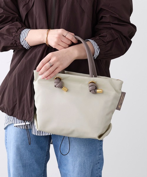 シンプルなデザインのボディにノットハンドルがアクセントになったトートバッグ。 内側は3層に分かれており、ファスナーを閉めたままアオリポケットにスマホやパスなどを収納できるので通勤などで安心してお使い頂けます。 長財布やペットボトルなどが収納でき、ショルダーストラップ付きの2WAY仕様です。 【fabric】 丈夫でハリのあるナイロン素材で、弱撥水性があるのでお手入れも簡単。 軽量なので、荷物が多い日でも快適に使用いただけます。 【coordinate】 柔らかなカラーと丸みのあるフォルムが、コーディネートに程よい女性らしさをプラス。 季節を選ばず取り入れやすく、シンプルな装いのアクセントとしてもおすすめです。 オン・オフ問わず使いやすく、デイリーからお出かけまで幅広く活躍します。 メーカー品番:V-2174 メーカー表記カラー GREIGE:ICE GRAY×TAUPE BLUE:DENIM×DENIM *外側:ポケット×2 *内側:ポケット×3 -------------------------------------- 【VIOLAd’ORO / ヴィオラドーロ】 バッグブランド「VIOLAd’ORO(ヴィオラドーロ)」。 イタリア語でVIOLAは紫、OROは金。 ブランド名の由来は、デザイナーがイタリア在住時にプレゼントされた1940年代の紫と金の掛け時計。 持つごとに愛着が湧き、大切に扱われる、そして自分のスタイルに欠かせないもの。 そんな存在であってほしいという願いを込めながら、上質でトラディショナルななかにも旬のエッセンスを織り交ぜた デザインを発信している。 -------------------------------------- ※商品画像はできる限り実物の色に近づけるよう徹底しておりますが、お使いのデバイスのモニター設定、お部屋の照明等の閲覧環境により実際の色味と異なって見える場合がございます。 ※画像の商品はサンプルです。実際の商品と仕様、加工が若干異なる場合があります。予めご了承くださいませ。 ▼商品のお気に入り登録 お気に入りアイテムの値下げ・再入荷・在庫1点などの通知を受け取ることができます。 ▼ブランドのお気に入り登録 新商品や再入荷、クーポン配布などのお得な情報を受け取ることができます。