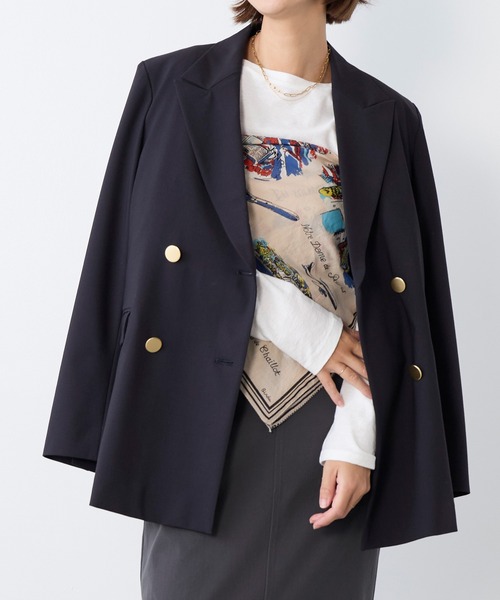 きれいめから大人カジュアルまで活躍するダブルジャケット。袖の振りや型、胸幅などシルエットにこだわった一枚です。袖裏の裏地がストライプ柄になっており、袖口を折った際にアクセントになります。色によってボタンの素材、色を変えるなど、細部にまでこだわりました。BEIGEは柔らかい女性らしいイメージ、NAVYはトラッドな印象で大人っぽい雰囲気に仕上がっています。【fabric】毛羽も少なく、しなやかでドライタッチな素材です。ウールのような上質感が特徴のトロピカル生地を使用しています。--------------------------------------透け感:なし裏地:あり伸縮性:なし光沢感:なし生地の厚さ:普通ポケット:あり--------------------------------------ドライクリーニング*詳しくは商品の洗濯表示にてご確認をお願い致します。【coordinate】前開けでラフな印象にしたり、インナーとの組み合わせ方で様々なコーディネートに対応できます。白のカットソーを合わせることで、爽やかなムードの大人カジュアルコーデが叶います。スニーカーを取り入れると、よりこなれ感が出ます。同素材のパンツと合わせたセットアップスタイルでは、インナー次第でオフィスやオケージョンから大人カジュアルスタイルまでお楽しみいただけます。こちらの商品はセットアップとしてもお楽しみいただけます。ドライタッチワンタックパンツ/0126103013■おすすめシーン卒園式 卒業式 入園式 入学式 学校行事 参観 七五三 お宮参り 同窓会 謝恩会 結婚式 ハレの日※商品画像はできる限り実物の色に近づけるよう徹底しておりますが、お使いのデバイスのモニター設定、お部屋の照明等の閲覧環境により実際の色味と異なって見える場合がございます。※画像の商品はサンプルです。実際の商品と仕様、加工が若干異なる場合があります。予めご了承くださいませ。▼商品のお気に入り登録お気に入りアイテムの値下げ・再入荷・在庫1点などの通知を受け取ることができます。 ▼ブランドのお気に入り登録新商品や再入荷、クーポン配布などのお得な情報を受け取ることができます。