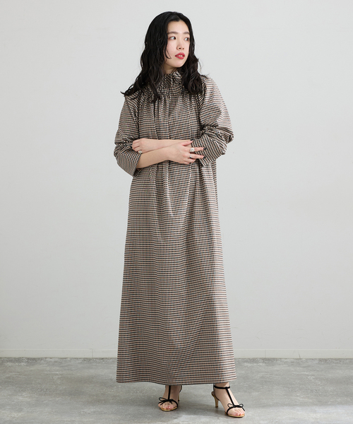 【2026SS】IENA山本マナさんとのコラボレーションアイテム。数ある素材候補の中からマナさんが選び抜いた、シェパードチェック柄のTR素材を使用し、ロングシーズン着用できる一着に仕上げました。もともとはブラウスとして構想されていたデザインを、試行錯誤を重ねる中でワンピースへと昇華。首元はゴム仕様で着脱しやすく、リラックスした着心地を叶えています。バックスタイルには深めのスリットを施し、甘さを抑えたシャープな印象に。また、縫い代にはピンクのパイピングをあしらい、袖をロールアップした際にさりげなく覗くカラーアクセントも、マナさんならではのこだわりポイントです。《IENA×MANA YAMAMOTO》スタイリスト山本マナさんを迎えたコラボレーション第二弾が完成。チョコレートやミルクティーのような色味からヒントを得たというマナさん。チノ風の生地やチェック柄など、今年らしいトラッドなアイテムに落とし込んだ。オーセンティックさと程よいボリュームをあわせ持ったシルエットでどんな人にもフィットするジャケットをはじめ、ショーツ、タックパンツ、ワンピース、バッグと5型のデザインがローンチされる。マナさんらしいエッセンスを加えたアイテムがあれば毎日のスタイリングがいきいきと輝き出す。※シリーズもございます。 THE M ステンカラージャケット(品番:26011900445010) THE M ワイドタックパンツ(品番:26030900424010) THE M ショートパンツ(品番:26030900446010) THE M トートバッグ(品番:26090900448010)**********************透け感:なし裏地:なし伸縮性:ややあり光沢感:なし生地の厚さ:普通**********************※取り扱いについては、商品についている品質表示でご確認ください。※こちらの商品は、IENAでの取り扱いになります。直接店舗へお問い合わせの際はIENA店舗へお願い致します。※照明の関係により、実際よりも色味が違って見える場合があります。またパソコン・スマートフォンなどの環境により、若干製品と画像のカラーが異なる場合もございます。予めご了承ください。※商品の色味は、商品アップ画像をご参照ください。本体:手洗い可能