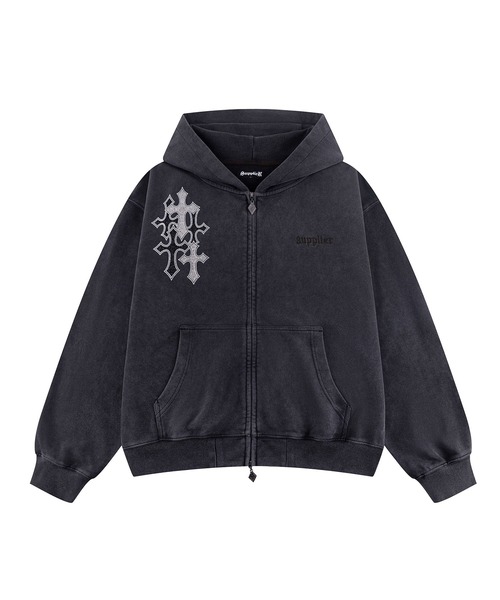 ジップパーカー|Multiple Cross Rhinestone Zip Hoodie|SUPPLIER