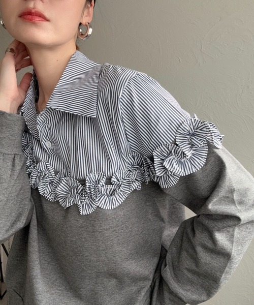 ① 大人カジュアル•ボトム:センタープレス入りのストレートデニム or 落ち感のあるワイドパンツ•足元:ローファー、ポインテッドトゥのフラット•小物:レザーのミニショルダー→ フリルの甘さをデニムとレザーで中和。② フェミニン寄せ•ボトム:サテンや落ち感素材のナロースカート•足元:華奢ストラップサンダル or ショートブーツ•羽織:コンパクトなカーディガン→ 異素材同士のコントラストで上品にまとまる。③ モード・辛口•ボトム:ハイウエストのスラックス、タック入りパンツ•足元:厚底ローファー、スクエアトゥブーツ•小物:シルバーアクセ、細ベルト→ フリルを「デザイン」として活かすスタイリング。④ レイヤード上級者•インナー:シアートップスやリブタートルを仕込む•ボトム:ワイドパンツ or カーゴ→ 異素材×異素材で奥行きが出る。着こなしのコツ•ボトムはシンプル・無地が基本•フリルが広がるタイプなら「タックイン or 前だけイン」•アクセは盛らず、質感で勝負 【Information】◆《お気に入り登録》がオススメ◆・「商品のお気に入り登録」で再入荷通知や、ラストの通知、セール通知も受け取ることが出来ます。・「ブランドのお気に入り登録」で新商品や再入荷など、お得な情報を受け取ることが出来ます。※撮影時のライティング、ご覧になっているモニター・PC環境により、実際の商品と色味が異なって見える場合がございます。予めご了承をお願い致します。大人ファッション 大人カジ お洒落 お仕事コーデ 低身長 20代コーデ 30代コーデ 40代コーデ 50代コーデ おすすめコーデ おちびコーデ 今日コーデ お洒落な人と繋がりたい オフィスコーデ お洒落さんと繋がりたい ママコーデ きれいめコーデ 春服 きれいめカジュアル 大人カジュアル ファッション通販 大人コーデ トレンド オトナカジュアル新作 新着 再入荷 エレガント ベーシック カジュアル 可愛い おしゃれ オシャレ お洒落 個性 個性的 定番 ベーシック 大人かわいい 大人可愛い 上品 女性らしい デザイン スタンダード ナチュラル きれいめ キレイめ シンプル フェミニン レディース レディースファッション 大人 ママ ミセス 30代 40代 50代 60代 フリーサイズ フリー 小さめ 小さめサイズ小さい 小さいサイズ 低身長 痩せ ほっそり 小柄 細身 標準サイズ 大きめシルエット 大きい 大きめ ビッグシルエット ぽっちゃり F サイズ自由 秋 夏 冬服 春物 夏服 秋服 春物 ホワイト 白 白色 日常着 普段着 日常使い