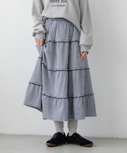■デザイン春らしいスタイリングが叶う、ギンガムチェックスカート♪"寒いけど春ムードを取り入れたい!"そんな時期にぴったりなアイテムです。細かいチェック柄と落ち着いた色味なので幼い印象にならず大人可愛い印象で着ていただけます◎切り替え部分にはフリルをあしらいポイントに♡肌寒い日はゆるっとしたニットやスウェットを合わせて、暖かい日にはブラウスやカットソーと合わせた春コーデをお楽しみください。冬から春夏シーズンにかけて長く着られます!デイリー使いやお出かけにぴったりです。■おすすめコーディネートニットカーディガンやスウェットと合わせた、リラックス感のあるフェミニンスタイリングが◎カジュアルなアイテムと組み合わせたカジュアルガーリーコーデもおすすめです。■flower/フラワー「love&joy」をコンセプトに、商品に愛を込め、お客様に楽しんでいただけるような、ナチュラルでガーリーなアイテムを提案していきます。【お買い物を上手にお楽しみいただくためのPOINT2つ】◎ 購入ボタン横の ♡ (ハートマーク)をクリック! 完売カラーの再入荷通知、残り1点の通知、セールの通知を受け取れます。 (クリックまたはタップで商品のお気に入り登録♪)◎ ショップのトップページにある ♡ (ハートマーク)「お気に入りショップに追加」をクリック! 新商品や再入荷等、いち早くブランドのお得な情報を受け取れます。 (ブランドのお気に入り登録♪)