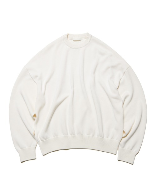 プレミアムコットンシルクで仕立てたミドルゲージニット。超長綿とシルクの贅沢なブレンドが、独特のしっとり感と美しい光沢を実現。ドロップショルダーのリラックスしたシルエットが、エフォートレスな雰囲気を演出します。アイデンティティを主張する後左裾のシグネチャー刺繍。爽やかなブルーとホワイトを含む3色展開。スウェット感覚で着たいカジュアルエレガンスな一枚です。