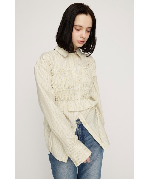 ■POINTルーズなシルエットのシャツに同素材のビスチェが付いた嬉しいセットアイテム。シャツにお好みで調節できるギャザーディテールを入れており、バラバラでも合わせやすいアイテムなので1着持っているだけでスタイリングの幅が広がります。洗濯によるシワが生じにくく、お手入れのしやすい素材を使用しているのでデイリー使いに嬉しいアイテムです。■DETAILビスチェはふんだんに施されたシャーリングとフリルで、華やかかつ愛らしい印象をプラスしてくれます。シャツは腰まわりも隠れる丈なので気になるボディラインもカバーしてくれます。新しく追加されたシャーリングを寄せることでウエストまわりを引き締めたメリハリのあるシルエットへと変化させることも可能です。■STYLINGシャツの上にビスチェをレイヤードするスタイルや、シャツの中にビスチェを着用して、シャツを羽織りのように着用するスタイルなど、汎用性のあるアイテム。デニムなどカジュアルなアイテムとのスタイリングはもちろん、ミニボトムスとあわせてワンピース風に着用して頂くのもおすすめです。1枚あるだけで、幅広いスタイリングを楽しんで頂けます。■FABRIC/MATERIAL洗濯によるシワが生じにくく、お手入れのしやすい素材を使用。■透け感:なし■光沢感:なし■伸縮性:なし■裏 地:なし[注意事項]※画像の商品はサンプルです。実際の商品と仕様、加工が若干異なる場合があります。※画像の商品は光の照射や角度、お使いのモニター環境により、実物と色味が異なる場合がございます。※着用、お取り扱いの際は、アテンションタグをご確認ください。※一部予約商品につきましては生産上の都合によりお届け予定日や店頭発売と前後する場合もございます。※追加生産商品は、一部の店舗、通販で販売中の場合がございます。予めご了承下さい。※こちらの商品はSLY独自の採寸方法となっています。本サイトのサイズガイドと採寸方法が異なる場合がありますのでご了承ください。【SLY/スライ】「Casual」「Girly」「Mode」をベースに発信する、ディテールへのこだわりが詰まった、どこか必ず女性らしさを感じるアーバンスタイル。 さまざまなエッセンスをミックスした、時代の空気を体現するコレクションを展開。▼商品のお気に入り登録お気に入りアイテムの値下げ・再入荷・在庫1点などの通知を受け取ることができます。▼ブランドのお気に入り登録新商品や再入荷、セール、クーポン配布などお得な情報を受け取ることができます。