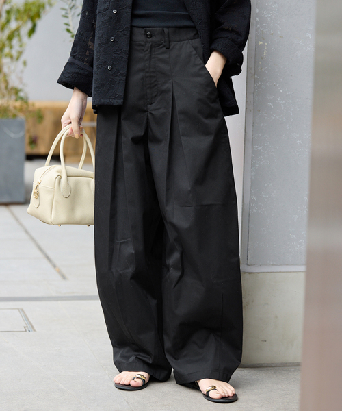 洗濯機使用可能/接触冷感機能付き/WEB限定【2026SS】SLOBE IENA大好評につき追加生産が決定しました!※旧品番25030912847030、26030912857010の追加商品です。※若干の仕様変更がある場合もございます。POINT・接触冷感機能を施したトラウザーパンツ。【素材の特徴】程よくハリのある薄手のチノ素材。肌離れが良く、接触冷感機能付きなので今から秋まで大活躍間違いなし。【デザイン】深めのタックをいれたワイド型で、裾に向けて丸みをつけたカーブシルエット。タックが入っているので、腰回りに程よいゆとりができ体型カバーも叶います。【コーディネート】ボリュームのあるシルエットなので、トップスはコンパクトなものと合わせていただくのがおススメです。※こちらの商品は、WEB限定商品です。店舗へは入荷致しませんのでお問い合わせの際にはご注意ください。※取り扱いについては、商品についている品質表示でご確認ください。こちらの商品は、SLOBE IENAでの取り扱いになります。直接店舗へお問い合わせの際はSLOBE IENA店舗へお願い致します。※照明の関係により、実際よりも色味が違って見える場合があります。またパソコン・スマートフォンなどの環境により、若干製品と画像のカラーが異なる場合もございます。予めご了承ください。※商品の色味は、商品アップ画像をご参照ください。本体:洗濯機洗い(弱)