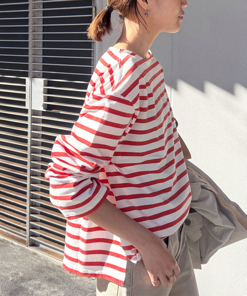 洗濯機洗い 【2026SS】 SLOBE IENA POINT ・春らしい鮮やかなカラーリングのボーダープルオーバーが登場! ・サイドスリットが効いたアウトで着やすい1着。 【素材の特徴】 程よく柔らかさのある生地。 くたっとしすぎないので、1枚でも安心感のある着心地。 【デザイン】 鎖骨にかかるくらいの開き具合。 身幅はリラックスして着られるようにゆったりしたサイジングに。 袖がずるっと長く、捲ってスタイリングのポイントにするのも〇。 【コーディネート】 そのままワンツーコーデで着るのはもちろん、 ブルゾンやトレンチコートのインナーにも存在感のあるボーダーの配色です。 ********************** 透け感:なし 裏地:なし 伸縮性:ややあり 光沢感:なし 生地の厚さ:普通 ********************** 《スタッフ名:Sally》 年齢:30代後半/身長:162cm/体型:細身/普段サイズ:M/着用サイズ:フリー サイズ感:ヒップにかかる着丈。手首がしっかり隠れるくらいの袖丈。 素材感: 肌当たりが良く、ごわつきがない素材。 着心地:身幅が広い分、ゆったり着られます。 ********************** ※取り扱いについては、商品についている品質表示でご確認ください。 こちらの商品は、SLOBE IENAでの取り扱いになります。 直接店舗へお問い合わせの際はSLOBE IENA店舗へお願い致します。 ※照明の関係により、実際よりも色味が違って見える場合があります。 またパソコン・スマートフォンなどの環境により、若干製品と画像のカラーが異なる場合もございます。 予めご了承ください。 ※商品の色味は、商品アップ画像をご参照ください。 ブルー、レッド(メイン)着用スタッフ身長:162cm 着用サイズ:フリー パープルB、レッド着用スタッフ身長:159cm 着用サイズ:フリー 詳細着用スタッフ身長:163cm 着用サイズ:フリー 本体:洗濯機洗い(弱)