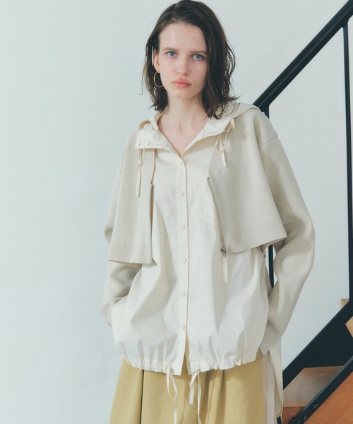 一枚で決まる、異素材レイヤードフーディフーディシャツとショート丈カーディガンを組み合わせたデザイン。一枚で洗練されたレイヤード風スタイリングが完成します。ニット部分にはZIPをプラスし、モードなアクセントに。程よいハリ感のニット素材を畔編みで仕立て、立体感のあるシルエットに仕上がるのもポイントです。シャツの裾はドローストリングを絞ることでギャザーを生み、こなれ感のある着こなしが叶います。トレンドのレイヤードコーデを気軽に楽しめるアイテムです。透け感[ややあり]生地の厚さ[普通]光沢感[なし]伸縮性[ややあり]裏地[なし]ポケット[なし]※モデル着用画像は、光の当たり具合で色味が違って見える場合がございます。※お使いのモニター環境によって商品の色味が違って見える場合がございます。26ss ̄ ̄ ̄ ̄ ̄ ̄ ̄ ̄ ̄ ̄ ̄ ̄ ̄ ̄ ̄ ̄ ̄ ̄ ̄●Editt by YECCA VECCA ●(エディット バイ イェッカ ヴェッカ)着心地のよいシルエットに都会的でエッジの効いたディテール使いで仕上げたモードなアイテム。YECCA VECCAというフィルターを通して編集する(=Edit)こだわりを持ち続ける大人の女性のためのカジュアルクローズを提案。▼商品のお気に入り登録がおすすめです ▼商品ページ内のハートマークをクリック。完売時の再入荷や、最後の1点の通知、最後の1点など、お得なお値下げ情報を受けとる事ができます。【お知らせ】ページでも通知が確認できます。 ̄ ̄ ̄ ̄ ̄ ̄ ̄ ̄ ̄ ̄ ̄ ̄ ̄ ̄ ̄ ̄ ̄ ̄ ̄