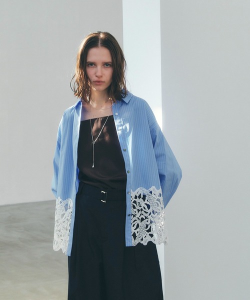 レースで魅せるモードなロングシャツ裾のレースが目を惹くロングシャツ。繊細なスカラップレースを使用した春らしい一枚です。後ろが長めのヘムデザインで腰まわりをさりげなくカバーしつつ、モードなシルエットを実現します。トップスとしてはもちろん、プルオーバーのインナーとして着用すればレースが覗くレイヤードスタイルが叶います。オフィスから週末のカジュアルまで幅広く対応し、スタイリングのアクセントとして長く活躍します。存在感のあるレースが、定番のシャツスタイルに新鮮さを与えてくれる一枚です。透け感[ややあり]生地の厚さ[普通]光沢感[なし]伸縮性[なし]裏地[なし]ポケット[なし]※モデル着用画像は、光の当たり具合で色味が違って見える場合がございます。※お使いのモニター環境によって商品の色味が違って見える場合がございます。26ss-------------------------------------------●YECCA VECCA●(イェッカ ヴェッカ)「大人のハッピーモードな着映え服」毎日を自分らしく、ハッピーに過ごすことにポジティブな女性のためのリアルクローズ。キーワードは「遊び心のある、女性らしいモード服」でも「コンフォート」。都会的で女性らしいムードを大切に着ていて心地よく、気持ちが上向きになるような遊び心のあるデザインウェアをラインナップ。自分自身がわくわく出来る洋服で日常を最大限に楽しむ大人の為のスタイルを提案していきます。▼商品のお気に入り登録がおすすめです ▼商品ページ内のハートマークをクリック。完売時の再入荷や、最後の1点の通知、最後の1点など、お得なお値下げ情報を受けとる事ができます。【お知らせ】ページでも通知が確認できます。-------------------------------------------