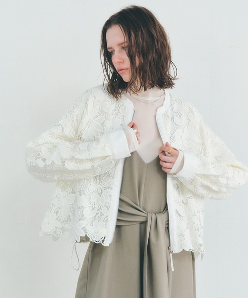 繊細なレースで作る、都会的な軽やかさ繊細なボタニカル柄レースが目を惹くノーカラーブルゾン。フロントファスナーのシャープなラインが全体を引き締め、細部の金具がさりげない高級感を演出します。裾のドロストでシルエットを調整でき、スタイリングに合わせて楽しめます。裏地付きで安心して着られ、通気性のあるデザインで季節の変わり目にもおすすめ。ワードローブに加えるだけで普段のコーディネートにモードさを添える、汎用性の高い一着です。透け感[ややあり]生地の厚さ[普通]光沢感[なし]伸縮性[なし]裏地[あり]ポケット[なし]※モデル着用画像は、光の当たり具合で色味が違って見える場合がございます。※お使いのモニター環境によって商品の色味が違って見える場合がございます。-------------------------------------------●YECCA VECCA●(イェッカ ヴェッカ)「大人のハッピーモードな着映え服」毎日を自分らしく、ハッピーに過ごすことにポジティブな女性のためのリアルクローズ。キーワードは「遊び心のある、女性らしいモード服」でも「コンフォート」。都会的で女性らしいムードを大切に着ていて心地よく、気持ちが上向きになるような遊び心のあるデザインウェアをラインナップ。自分自身がわくわく出来る洋服で日常を最大限に楽しむ大人の為のスタイルを提案していきます。▼商品のお気に入り登録がおすすめです ▼商品ページ内のハートマークをクリック。完売時の再入荷や、最後の1点の通知、最後の1点など、お得なお値下げ情報を受けとる事ができます。【お知らせ】ページでも通知が確認できます。-------------------------------------------