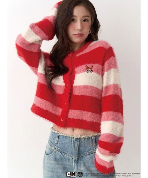 メインキャラクター?ブロッサム、バブルス、バターカップそれぞれの キーカラーに合わせた配?のニットカーデはキャッチーなカラーが?を引くこと間違いなしな1枚。胸元のキャラクター刺繍とPOPなハートボタンがアニメの世界観にもぴったりで、短丈のボックスシルエットなのでジャケットライクに使いやすいです。【商品特徴】 透け感:なし 伸縮性:あり 生地の厚さ:厚手 サイズ感:ゆったり 裏地:なし ポケット:なし