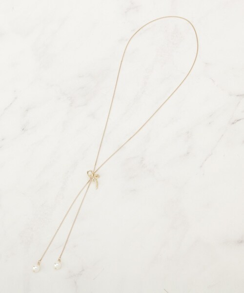 【デザイン】リボンモチーフがさりげないY字デザインのロングネックレス。先端部分のパール調が上品に揺れて女性らしさを引き立てます。リボン部分がスライダーパーツとなっており、スタイルに合わせて長さ調整が可能です。※照明の関係により、実際よりも色味が違って見える場合があります。また、パソコン・スマートフォンなどの環境により、若干製品と画像のカラーが異なる場合もございます。店舗へのお問い合わせ商品番号:508-05309●製品寸法:00:全長68cm モチーフH1.8cm モチーフW1.8cm備考: