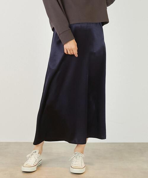 厚手のサテン素材で作ったナロースカート。広がりすぎないシンプルなシルエットで、春らしい光沢感を気負わずにまとえるおすすめの1枚です。ストレッチがきいているので足さばきよく、スリットが苦手な方にも◎左脇ファスナー開き、ウエストはフルゴム+内紐でサイズ調整が可能。右脇にポケットあり。 ※画像の商品はサンプルです。実際の商品と色味、仕様、加工、サイズ、素材等が若干異なる場合がございます。