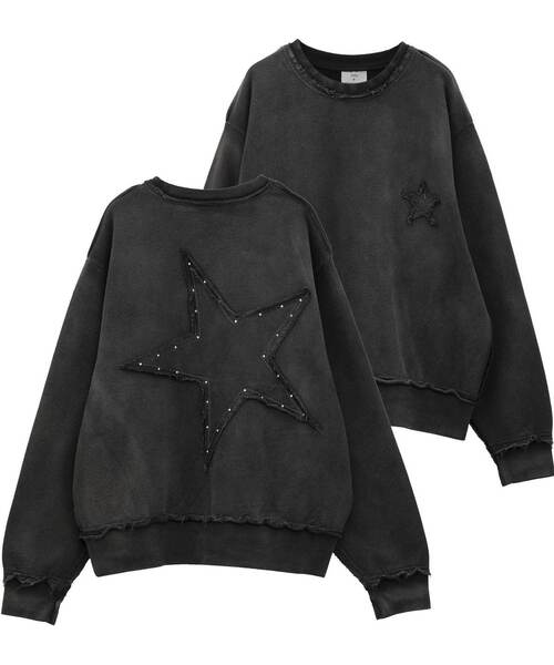 スターパッチワークスウェット ■デザイン 背面に大きく施された星のパッチワークが存在感を放つスウェットプルオーバー。 全体に絶妙なムラ感のあるフェード加工を施し、ヴィンテージライクな表情に仕上げた一枚。 切りっぱなしのパッチワークに沿ってあしらわれたスタッズが、エッジの効いたアクセントをプラス。 首元や裾、袖口のリブ部分にはダメージ加工を施し、長年着込んだようなこなれ感を演出。 ユニセックスで着られるリラックス感のあるシルエットも魅力。 【サイズ表記】2=Sサイズ 3=Mサイズ ■素材 馴染みが良く、デイリーに使いやすい裏毛素材を採用。 フェード加工による独特の風合いは、着込むほどに味わい深く変化するのもポイント。 ■コーディネート 背面のデザインを活かし、シンプルなボトムと合わせたストリートスタイルが◎。 ワイドデニムやカーゴパンツでとことんカジュアルにまとめるのはもちろん、あえてスラックスやナロースカートと合わせて楽しむのもおすすめ。 ゆったりとしたサイズ感なので、シャツをインナーに入れたレイヤードスタイルもトレンドライクな着こなしに。 ------------------------------------- 透け感:なし 裏地:なし 伸縮性:あり 光沢感:なし 生地の厚さ:普通 ------------------------------------- ※商品画像は撮影時の光や角度により、実物の色味と異なって見える場合がございます。