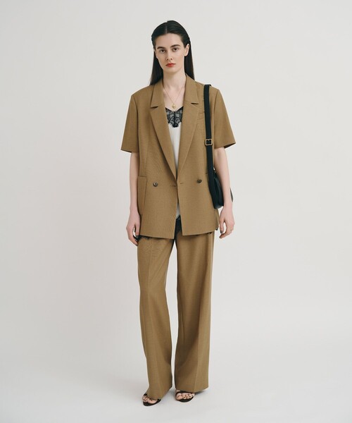 【allureville 2026 Spring & Summer】 ウエスト周りをスッキリとさせた、女性らしいシルエットのハイウエストタックパンツ。 ベルト上から続くタックとベルト釦がポイントに。 脇ファスナーにしているので前がスッキリと見え、マニッシュさと女性らしいエレガントさを兼ね備えたデザインとなっています。 リネン混の風合いのある素材でありながらシワになりづらいのでオフィスでも活躍できる一枚です。 ※手洗い可能です。 【スタッフコメント】 脚のラインをひろわず、すっきりと着られるタックパンツ。 リネン混の爽やかで軽い風合いが特徴ですがシワになりにくく、気兼ねなく履いていただけます。 薄手の生地で夏まで着られそうです。 同生地のジャケットとセットアップ着用とてもおすすめです◎ ※照明の関係により、実際よりも色味が違って見える場合がございます。 またパソコン・スマートフォンなどの環境により、製品と画像のカラーが異なる場合もございます。 予めご了承ください。