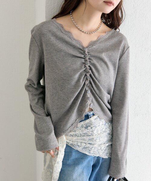 レースとギャザーが女性らしさを引き立てるリブカーディガン ●デザイン ・フロントのギャザーデザインが魅力のリブカーディガン。 ・程よくフィットするリブ素材で、スッキリとしたシルエット。 ・前開き仕様で、トップスとしても羽織としても着用可能◎ ●スタイリング ・デニムと合わせて、甘さを抑えた大人カジュアルスタイルに。 ・スラックスを合わせれば、キレイめな印象になります。 ・キャミやサロペットのインナーとしてもおすすめです。 ●おすすめスタイリングアイテム バレルBIGデニム Wベルトパンツ ●素材/取り扱い方法 洗濯:40度限度 手洗い/石油系ドライクリーニング可 アイロン:低温120℃まで(あて布使用) タンブル乾燥:不可 裏地:なし 伸縮性:あり 光沢感:なし 生地の厚さ:普通 ------------------------------------------------------ ▼商品のお気に入り登録 お気に入りアイテムのセール通知や完売カラーの再入荷通知、在庫残り1点などの通知を受け取ることができます。 ▼ブランドのお気に入り登録 新商品や再入荷、セール、クーポン配布などお得な情報をいち早く受け取ることができます。 ▼メルマガ登録 mysticのお得な情報やニュースを一足先にお届けします。 ------------------------------------------------------ 商品について ※ご注文いただいた予約商品のお届け時期の確認は、注文履歴ページより行えます。 ※サイト上のカラー名と、お届け商品に記載されているカラー名が異なる場合がございます。 ※商品の色味は、撮影場所や光のあたり具合などにより色味が違って見える場合が御座います 。 また、お客様のお使いのPCのモニター環境などにより色味が違って見える場合が御座います。予めご了承の上ご注文下さい。