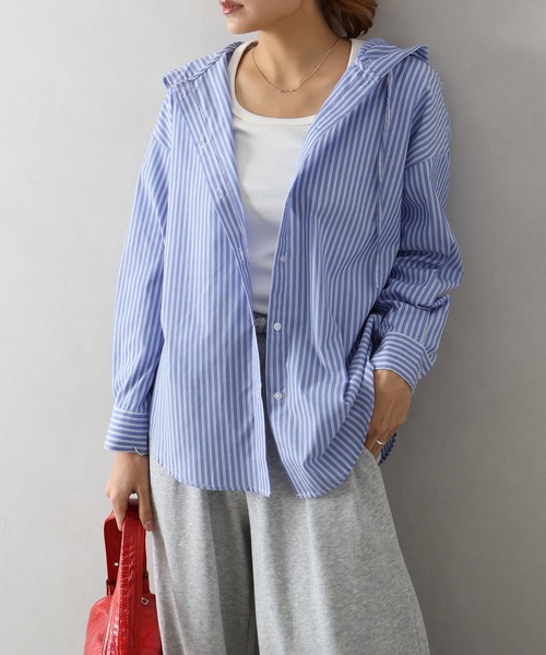 【SpRay ストライプフードシャツ】爽やかで清潔感のあるストライプ柄に、カジュアルなフードを組み合わせた一枚です。ゆったりとしたオーバーサイズシルエットとドロップショルダーが今っぽさを演出し、シャツのきちんと感とパーカーのリラックス感を絶妙にミックスしています。軽やかなコットンライクな素材は羽織りとしても重宝し、デイリーからお出かけまで幅広く活躍する万能アイテムです。#ストライプシャツ#フード付きシャツ#オーバーサイズ#スプレイ#spray【素材感】柔らかく肌触りの良い生地。※詳しいお手入れ方法は商品タグをご参照ください。◆伸縮性無し ◆透け感無し ◆裏地無し 【商品のお気に入り登録】完売カラーの再入荷通知やラスト1点の通知プライスダウンの通知も受け取ることができます。ぜひご登録ください◎【ブランドのお気に入り登録】新商品や再入荷など、いち早く情報を受け取ることが出来ます。※輸送時による、多少の汚れ・シワがある場合がございます。※撮影時のライティング、ご覧になっているモニター・PC環境により実際の商品と色味が異なって見える場合がございます。ご了承の上お買い求め下さい。※着用、お取り扱いの際は、商品に付いている品質表示とアテンションタグを必ずご確認ください。
