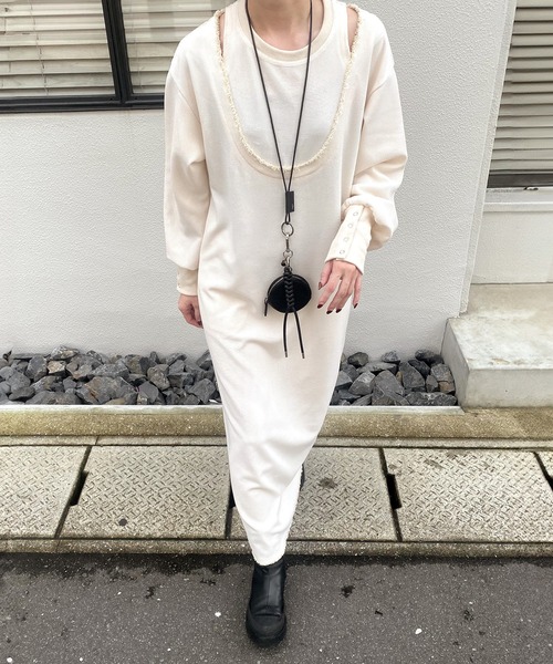 レイヤードデザインワッフルワンピース(kiharu original)/ ロング丈 レイヤード風 サーマル 長袖 春 春服