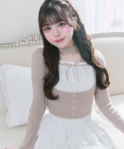 一枚で着映える、レイヤード風デザイントップス。■デザイン・キャミソールを重ねたようなドッキングデザインで、コーデに立体感をプラス。・胸元の切り替えとボタンディテールが女性らしいアクセントに。・程よくフィットするシルエットで、すっきりとした印象。・カラーごとに異なる柄・表情が楽しめるデザイン。■カラー・ベージュ/グレー/ブラックの3色展開■スタイリング・Layered Frill Mini Skirt (品番:1161010020)と合わせて着るのがおすすめ。・ミニボトムと合わせて甘めスタイルにも◎・Back Logo Flare Denim (品番:1161020020)と合わせてカジュアルダウンした着こなしも楽しめます。--------------------裏地:なし光沢感:なし透け感:なし伸縮性:あり手洗い:可能タンブラー乾燥:不可アイロン:110℃以下--------------------model:165cm■お気に入り登録のおすすめ【気になるアイテムを登録】ハートをクリックしてお気に入りに登録すると完売カラーの再入荷やラスト1点の通知、セールの通知を受けとることができます。【ブランドを登録】新商品や再入荷、セール通知など、いち早くブランドの情報を受けとることができます。