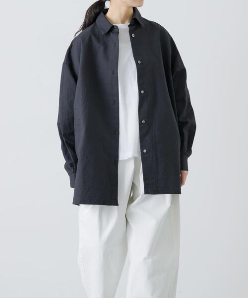 春に着たい軽やかなアウターが届きました 刺し子のようなステッチを施し、ポコポコとした表面感が特徴のドビー生地を使用したシャツジャケット。コットン100%なので天然素材ならではの穏やかな雰囲気が感じられます。気温が上がってきたら日々の着こなしに取り入れたいアイテム。さっと羽織るのに便利で、ボタンを上まで留めてトップス風に着こなすのも素敵ですよ。左右についたポケットもポイントで、メンズライクなオーバーサイズが抜け感を生んでいます。きれい目なスカートとのスタイリングもおすすめ。 【FABRIC】 ・硬すぎず厚すぎず、適度にしっかりとした素材感 ・クリーンで品のあるIVORY、シャープなCHARCOAL 【POINT】 ・春秋の2シーズン着まわせる1枚 ・ワンピースやサロペットに合わせても 【2026 Spring/Summer】【26SS】 総重量 : 約445g ※商品画像は、光の当たり具合やパソコンなどの閲覧環境により、実際の色味と異なって見える場合がございます。予めご了承ください。 ※商品の色味の目安は、商品単体の画像をご参照ください。 ▼お気に入り登録のおすすめ▼ お気に入り登録された商品は、マイページにて現在の価格情報や在庫状況の確認が可能です。 お買い物リストの管理にぜひご利用ください。 素材感 透け感 : なし 伸縮性 : なし 裏地 : なし 光沢 : なし ポケット : あり IVORY:162cm(FREE) / 167cm(FREE) / 162cm(FREE) Free