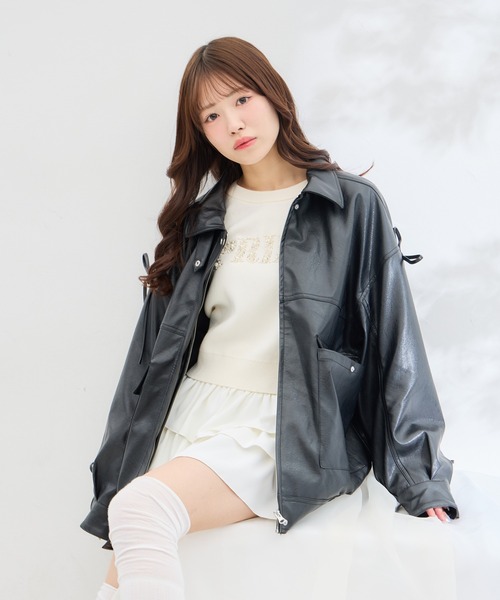 【リボンがキュートな印象をプラスしてくれるフェイクレザーブルゾン】 ▼Design これからの季節にぴったりなフェイクレザーブルゾンが登場! 袖と腕に付いたリボンがメンズライクなブルゾンにキュートをプラス◎ リボンは取り外し可能なので気分によって雰囲気を 変えることができる万能アイテムです。 ベーシックなカラーデザインなのでどんなアイテムにも 合わせやすいのが嬉しいポイント♪ ▼Styling デニムやスニーカーを合わせてカジュアルなスタイリングに。 ミニスカートを合わせた甘めミックスなコーディネートもおすすめ◎ フェミニンなワンピースやロングスカートと合わせれば 甘すぎない、こなれ感溢れるコーディネートが完成します。 ・リボン取り外し可能 ・裏地あり ▼Recommend ・フェイクレザー ・レザージャケット ・ブルゾン ・リボン ・カジュアル ・カジュアルガーリー