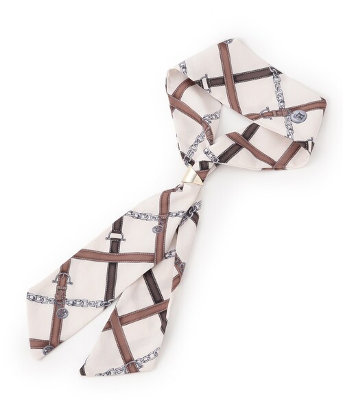巻き方次第で表情が変わる、使いやすいナロースカーフ。 【デザイン】 コンパクトなサイズ感で扱いやすく、アレンジしやすいのがポイントです。 首元で一度結ぶだけのシンプルなスタイルから、リボンのように結んでフェミニンさをプラスするスタイルまで、気分に合わせて楽しめます。 手首に巻いてブレスレット代わりにしたり、ベルトループに通してウエストのアクセントにしたり、バッグのハンドルに巻いてチャームのように楽しんでいただいたりと、アクセサリー感覚で取り入れていただけます。 スカーフリングが付属しているので、着脱も簡単で上品見えするのがうれしいアイテムです。 ※照明の関係により、実際よりも色味が違って見える場合があります。また、パソコン・スマートフォンなどの環境により、若干製品と画像のカラーが異なる場合もございます。 【26SS】 店舗へのお問い合わせ商品番号:769-35006 ●製品寸法: 00:全長85cm 幅5.5cm 付属パーツH2.1cm 付属パーツW1.7cm 備考: