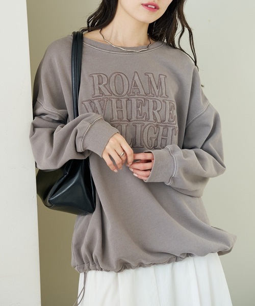 立体感ロゴが映える、大人カジュアルスウェット●デザイン・立体感のあるアップリケロゴがスタイリングのアクセントに。・ゆとりのあるシルエットで、こなれた印象に。・裾部分はドロスト付きで、絞り具合を調整して好みのシルエットで着ていただけます。●スタイリング・デニムやスラックス合わせで、王道カジュアルスタイルに。・スカートやレースアイテムを合わせて、甘さをプラスするのもおすすめです。・シャツやシアートップスとのレイヤードで、トレンド感のある着こなしにも◎●おすすめスタイリングアイテム裾スリットフレアデニムレースパネルキャミチュニックTRショートパンツ●素材/取り扱い方法洗濯:40度限度 手洗い/石油系ドライクリーニング可アイロン:低温120℃まで(あて布使用)タンブル乾燥:不可裏地:なし伸縮性:あり光沢感:なし生地の厚さ:普通【動画の着用サイズ】身長162cm 骨格ナチュラル サイズFREE※動画はアプリケーション内の商品ページにてご覧いただけます。------------------------------------------------------▼商品のお気に入り登録お気に入りアイテムのセール通知や完売カラーの再入荷通知、在庫残り1点などの通知を受け取ることができます。▼ブランドのお気に入り登録新商品や再入荷、セール、クーポン配布などお得な情報をいち早く受け取ることができます。▼メルマガ登録mysticのお得な情報やニュースを一足先にお届けします。------------------------------------------------------商品について※ご注文いただいた予約商品のお届け時期の確認は、注文履歴ページより行えます。※サイト上のカラー名と、お届け商品に記載されているカラー名が異なる場合がございます。※商品の色味は、撮影場所や光のあたり具合などにより色味が違って見える場合が御座います 。 また、お客様のお使いのPCのモニター環境などにより色味が違って見える場合が御座います。予めご了承の上ご注文下さい。