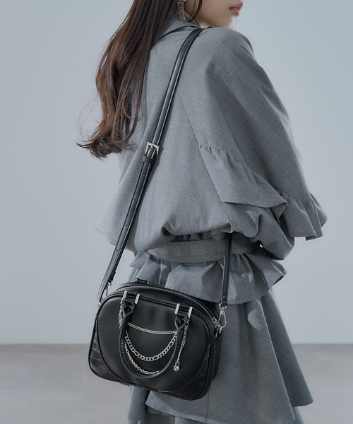 ーーー切り替えデザインと取り外せるチェーンがポイントのハンド&ショルダーバッグーーーpoint□スムース×型押しのフェイクレザー切り替えデザインがポイント□チェーンは取り外せるデザインで、カジュアルやきれいめなどジャンルを問わず使いやすい□ショルダー部分は取り外し可能で手持ちでも使える為、シーン別で使いやすいstylingショルダーは調節可能で厚みのあるトップスにも合わせてお使いいただけます。シンプルなコーディネートに合わせるとワンポイントアクセントに◎※加工を施した画像を使用しております。実物と色味が異なる可能性があるため、色味は詳細後ろにある生地寄り画像を参考にお願いいたします。あらかじめご了承下さい。
