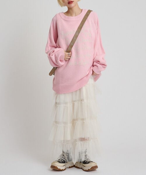 1枚で決まる★メッセージロゴニット▼デザイン・ポップながらも強すぎないメッセージロゴ・首元はつまり過ぎていないのですっきり着用できます・もちもちとした生地で着心地も◎▼コーディネート・長めの丈なのでミニ丈ボトムスと合わせてミニワンピとして着ても♩・春はチュール素材と合わせて柔らかい印象にまとめるのもおすすめです。※洗濯、取り扱い洗濯:40度限度 手洗いアイロン:低温120℃まで スチームなし(あて布使用)タンブル乾燥:不可--------------------裏地:なし透け感:なし厚さ:やや厚め伸縮性:ややあり--------------------【商品のお気に入り登録】お気に入りアイテムの値下げ・再入荷・在庫1点などの通知を受け取ることができます。【ブランドのお気に入り登録】新商品や再入荷、セール、クーポン配布などお得な情報を受け取ることができます。※サイト上のカラー名と、お届け商品に記載されているカラー名が異なる場合がございます。※商品の色味は、撮影場所や光のあたり具合などにより色味が違って見える場合が御座います。また、お客様のお使いのPCのモニター環境などにより色味が違って見える場合が御座います。予めご了承の上ご注文下さい。※ご注文いただいた予約商品のお届け時期の確認は、注文履歴ページより行えます。