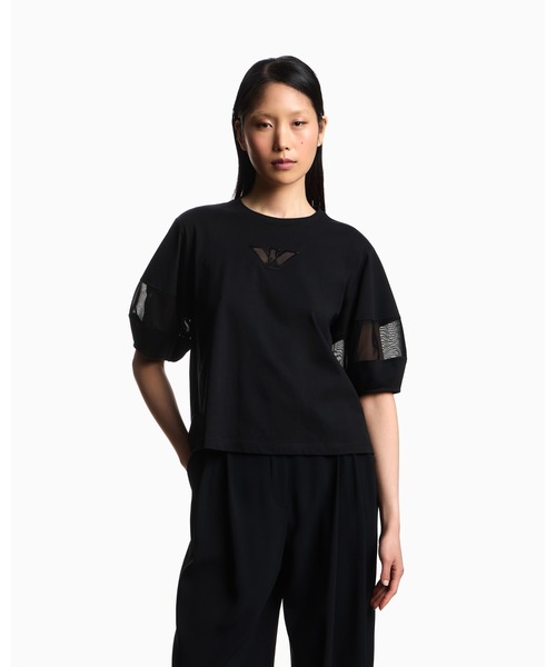すばらしい柔らかさ、耐久性、光沢を備えた高品質のピマコットン、ラグジュアリーなスーピマを使用したラウンドネックTシャツ。 前面のアイコニックなイーグルと両袖に、同色のメッシュ素材で切替えを施しました。 ジャージー/スーピマコットン/メッシュ素材の切替え/ラウンドネック/半袖/前面にイーグル/裾にサイドスリット ※商品の色味は、光のあたり具合など諸条件により色感が多少異なって見える場合がございますので予めご了承下さい。 ▶お気に入り登録:ハートマークをクリックして、入荷情報・再入荷・セール情報を受け取れます。 【EMPORIO ARMANI ブランド紹介】 1981年にイタリア、ミラノで誕生。デザイナーはジョルジオ・アルマーニ。イタリア語でエンポリオとは「あらゆるものが手に入る大きな市場」という意味。着心地と自由な発想を大切にしながら、都会的で洗練されたアイテムを提案しています。 ※こちらはジョルジオ アルマーニ ジャパン株式会社の公式オンラインストアです。アフターサービスにつきましては、当サイト内サポートセンターへご連絡下さい。
