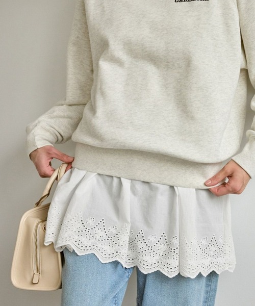 甘さひかえめ。大人にちょうどいいレースレイヤード。【素材感】 ・柔らかい綿100%素材を使用。 ・裾にはスカラップ刺繍+アイレット刺繍を施し、軽さと抜け感をプラス。 【デザイン・シルエット】 ・重ねるだけで旬のレイヤードスタイルが完成するキャミソールビスチェ。 ・フロントはすっきり見えのVあきで、どんなトップスとも相性◎ ・ピンタックやフロントボタンで、上に重ねたときも地味見えしないようデザインをプラス。 ・控えめギャザーのティアードで、甘さを抑えた大人カジュアルな印象に。 ・裾にはスカラップ刺繍×アイレット刺繍×ハシゴレースを使用し、レイヤード時に可愛く映える仕様。 ・肩紐は長さ調整可能で、合わせるトップスに合わせて丈感アレンジがしやすい。 【カラー】 ・オフのみの1色展開。 【スタイリングポイント】 ・スウェットの中にレイヤードし、デニムやチノ、トタンテレコスカートでカジュアルに。 ・ジャケットを肩掛けしてこなれ感をプラス。 ----------------------------- 裏地:なし 光沢感:なし 透け感:あり 伸縮性:なし ファスナー:なし ポケット:なし ボタン:あり(飾りボタン) 生地の厚さ:普通 肩紐:調整可 その他仕様:後ろ一部ゴム 季節:通年 ----------------------------- ※撮影時の光、お使いのモニター環境によって色の見え方が違う場合がございます。 ※2025年秋冬商品より、ワンサイズ展開の商品は「F(フリーサイズ)」表記に変更しております。 詳しい採寸はサイズ欄をご覧ください。 【モデル着用サイズ】 身長:168cm 着用サイズ:F