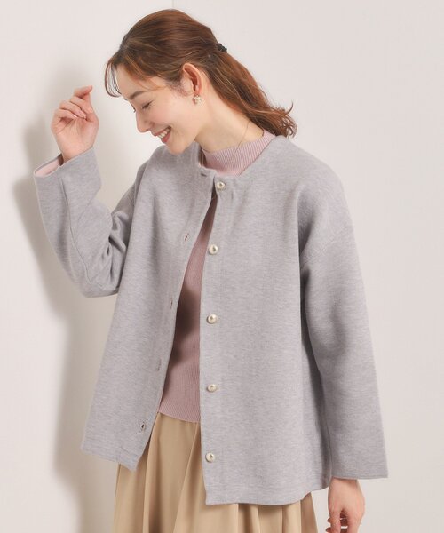 【デザイン】秋冬に大人気だったWフェイスニットコーディガンが春素材にリニューアル。カーディガン以上、コート未満の着回し力でロングシーズン使える優秀アイテム!2枚の編地を繋ぎ合わせた接結編みで仕立てたコーディガン。内側は軽さとスポンディッシュなタッチ感が特徴のポリエステル糸を使用。外側は柔らかな肌触りのレーヨン・ナイロンの糸を使用。内側にハリ感の出るスポンディッシュポリエステル素材を使用する事で編地のダレ感を抑えアウターの様に仕立て映えするシルエットを再現しています。配色使いのデザインになっているので、袖口を折り返せばコーディネートのアクセントに。ゆとりのあるサイズ感で厚手のニットも中に着込めるので、まだ寒い春先の時期からお使いいただけます。ゴールドのボタンがきれいめスタイルにマッチする上品なデザインです。【素材】スポンディッシュポリエステル糸と柔らかな肌触りのレーヨン・ナイロン糸の接結編みニット。※照明の関係により、実際よりも色味が違って見える場合があります。また、パソコン・スマートフォンなどの環境により、若干製品と画像のカラーが異なる場合もございます。----------------------------------------★お気に入り登録がおすすめ★▽気になる商品はハートマークをクリック!・再入荷やセールの通知をお知らせ・お気に入り一覧からいつでもチェック▽ブランドのお気に入り登録も!・新商品やお得な情報をいち早くお知らせ----------------------------------------モデル情報:身長171cm B80 W59 H88 着用サイズ:00(フリーサイズ)店舗へのお問い合わせ商品番号:P93-45502●製品寸法:00(フリーサイズ):着丈60cm B112cm 袖丈46cm 肩幅55cm備考:重量:00(フリーサイズ)約435g