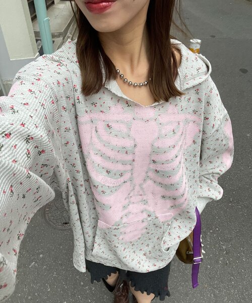 今っぽくこなれた雰囲気のフラワーサーマルロンT ▼ポイント フェード感のあるフラワー柄に、かすれたスケルトンプリントを重ねたスキッパーフーディー。 フロントから袖までプリントを施し、ダメージ加工で古着やヴィンテージのような表情に仕上げています。 程よくルーズなシルエットとスキッパーデザインで、抜け感のある着こなしが楽しめる一枚です。 ▼スタイリング デニムやロングスカートと合わせて、力の抜けた古着ミックスに。 インナーをちらっと見せるスキッパー仕様で、レイヤードも自然に決まります。 --------------------------------------------------- 透け感:なし 伸縮性:あり 裏地:なし 光沢:なし --------------------------------------------------- 家庭洗濯:40℃限度/ 洗濯機[非常に弱い] タンブル乾燥:不可 アイロン:中温150℃まで クリーニング:ドライクリーニング不可, 非常に弱い操作によるウェットクリーニング可 ●この製品は縫製後、製品染めをしています。そのため、1枚1枚色の出かた、風合い、サイズなど微妙に違う場合があります。 ●着用中の摩擦や汗、水などで濡れたことによる他のものへの色移りにご注意ください。 ●この製品はデザインとして、一部分を意図的に裁ち切り状態にしております。 ●着用や洗濯・クリーニングの繰り返しにより、ほつれが増したり、裁ち切り部分が丸まってくる事がありますので、ご了承ください。 --------------------------------------------------- 【RePRODUCTION LABEL / リプロダクションレーベル】 「vintage」をリスペクトし、当時のスタイルと魅力を 現代ファッションへ再構築(re-production)したレーベル。 vintageの空気感を残しながら ブランド独自のフィルターを通すことで よりモダンなエッセンスを加えたコレクションを展開。 『fashion の熱量は、どの時代も変わらない』 2023AWより元ラグジュアリーブランドトップデザイナーを 迎えて始動 ------------------------------------------------------ ※着用、お取り扱いの際は、商品についている品質表示とアテンションタグを必ずご確認下さい。 ※画像の商品はサンプルです。実際の商品と仕様、加工、サイズが若干異なる場合がございます。 ※可能な限り実物に近いカラーにて掲載していますが、撮影環境やモニター環境などにより製品と画像のカラーがやや異なって見える場合もございます。予めご了承ください。 【お買いものをよりお楽しみいただく為に!!】 ▼商品のお気に入り登録(ハートマークをクリック) お気に入りアイテムの完売カラーの再入荷通知や、ラスト1点の通知、セールの通知も受け取ることができます。 ▼ブランドのお気に入り登録 新商品や再入荷、クーポン配布などのお得な情報を受け取ることができます。