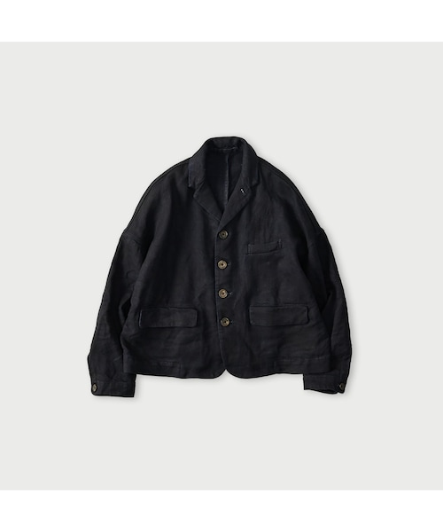 本物のリネンヨーロッパで採れる良質のリネンは、世界で最も希少価値が上がっている原料のひとつ。原料をたっぷりと使ってぎゅっと目の詰まったリネンヘリンボンを織り上げました。フランスの古いスモックをお手本に、墨コーティングを施したブラックインディゴリネンは、圧倒的な素材の力を感じさせてくれます。4つボタンにフラップポケット、伝統的な仕様に仕立てた馬ジャケットはジャストサイズでも、オーバーサイズでも格好よく着ていただけます。