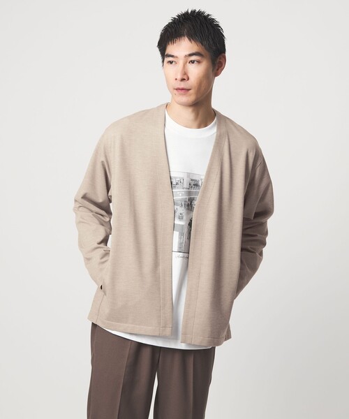 クリーンな印象のボタンレスカーディガン・先染めスーツ素材が得意なフランス<CARREMAN>社の生地・同社ならではの仕立て映えする仕上がりが特徴・シンプルなディテールですっきりとした見た目■デザインボタンレスで気軽に羽織ることができるイージーカーディガンです。フロントは襟や前立てのハギがない身返し仕様に。腰ポケットはハギを利用したシームポケットにすることで、ミニマルな表情に仕上げました。■素材CARREMAN社(フランスの感性でデザインされた中国生産)の生地を使用。表側に細かな凹凸があり、裏側はフラットになっているダブルフェイス生地になっています。■コーディネートキレイメやカジュアルなスタイルにおすすめです。Tシャツやカットソーだけだとシンプルすぎるシーンや、オフィスカジュアルでの冷房除けなど、気軽に羽織れる便利な一枚。すっきりとした首周りなので、クルーネックはもちろん、ヘンリーネックや襟付きのシャツなどさまざまなトップスと相性が良いです。============================裏地:なし透け感:なし光沢感:ややあり============================【注意事項】※商品に「取り扱い上の注意書き」、「洗濯表示」がございます場合は、使用前に必ずご確認ください。※商品画像は、光の当たり具合やパソコンなどの閲覧環境により、実際の色味と異なって見える場合がございます。あらかじめご了承ください。※商品の色味の目安は、商品単体の画像をご参照ください。※画像の商品はサンプルです。店舗へお問い合わせの際は、全国のgreen label relaxing各店舗まで下記の品名/品番をお申し付けください。品名:CSM CARREMAN EASY C/GN_A 品番:32271000002